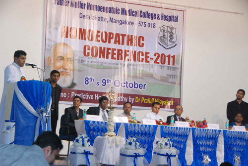 NATIONAL HOMOEOPATHIC CONFERENCE was held at Father Muller Homoeopathic Medical College, Deralakatte, on the 8thand 9th October 2011. Dr Reju M.T., I.A.S., Deputy Commissioner, Udupi, inaugurated the Conference on the 8th October 2011 at 9.30 a.m.Dr Shantaram Shetty, Vice Chancellor – Nitte University, was the Guest of Honour and Rev. Fr Patrick Rodrigues, Director, Father Muller Charitable Institutions presided over the function. Rev. Fr Wilfred Prakash D’Souza, Administrator, Father Muller Homoeopathic Medical College & Hospital, Dr Srinath Rao, Principal, Father Muller Homoeopathic Medical College, and Dr Madona Joseph, Organizing Secretary, Homoeoapthic Conference 2011, were the other members present on the dais.