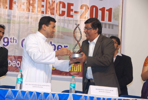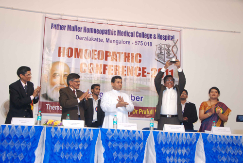 Rev. Fr Wilfred Prakash D’Souza, Administrator, Father Muller Homoeopathic Medical College & Hospital, Dr Srinath Rao, Principal, Father Muller Homoeopathic Medical College, Dr Prafull Vijayakar, Main Speaker of the Conference, Dr Madona Joseph, Organizing Secretary, Homoeoapthic Conference 2011 and Dr Anita Lobo, Chairperson, Souvenir Committee, were the other members present on the dais.