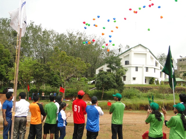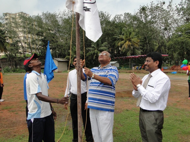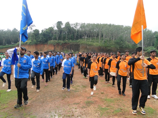 Programme started as MC Ms Sunera Fathima introduced the dignitaries on their arrival. Parade of the athletes was an eye catching event, which was followed by the release of the balloons and hoisting of the institutional flag. Welcome note was rendered by Principal Dr Shivaprasad K, followed by athletic torch relay.